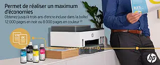 L'imprimante HP Smart Tank 7605, c'est la solution économique pour la maison ou le petit bureau. Elle imprime, scanne, photocopie et faxe. Le gros plus : elle vient avec de l'encre pour environ 3 ans d'utilisation (selon ton volume), donc fini les cartouches chères. Format A4, recto-verso automatique, WiFi, port USB, et chargeur automatique de documents. Encre à réservoirs facile à recharger. Parfaite pour les devoirs, les documents, les photos. Installation simple, appli HP Smart pratique. Si tu veux une imprimante fiable, avec des coûts d'impression bas, c'est un excellent choix. Référence 28C02ABHC.